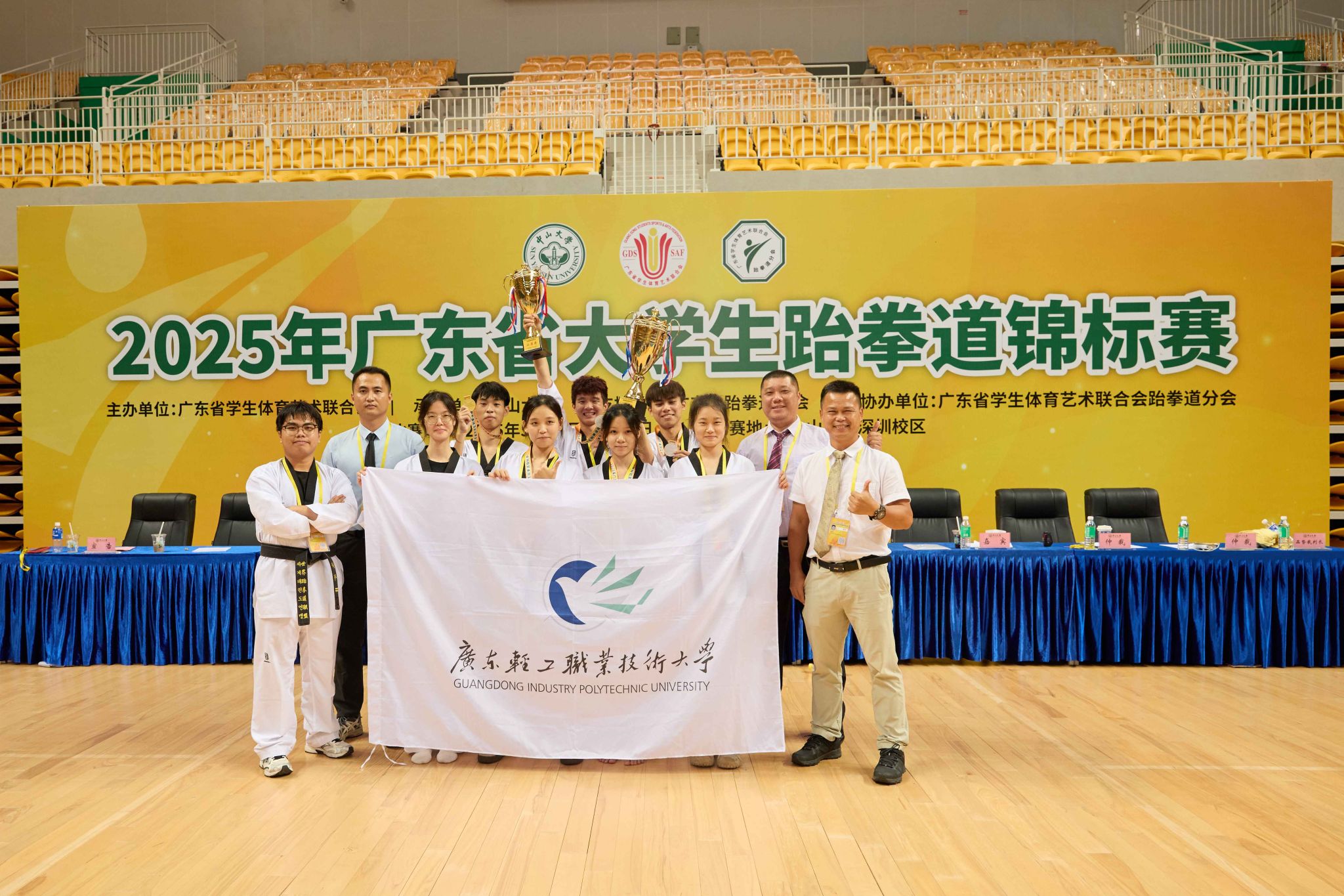 5月29日—6月2日,2025年广东省大学生跆拳道锦标赛在深圳举行,全省共63所高校,近400名运动员参赛。我校跆拳道队选派8名运动员,在领队陈绿波,教练员陈清华、刘宁、黄荣军的带领下,荣获1金3银1铜。其中,吴晓锐(精化232)获个人竞技57kg级冠军,陈晓田(化技242)获个人竞技63kg级亚军,李诗琪(护理241)获个人竞技46kg级亚军,黄健斌(空乘241)获个人品势高级组亚军,郑思敏(精化232)获个人竞技57kg级季军。